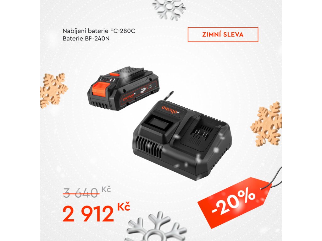 Tento zvýhodněný set kombinuje výkonnou aku baterii Dnipro-M BP-240N 4 Ah a rychlonabíječku FC-280C – ideální pro rozšíření výbavy vašeho aku nářadí Dnipro-M 20 V a pro minimalizaci prostojů díky rychlému dobíjení.