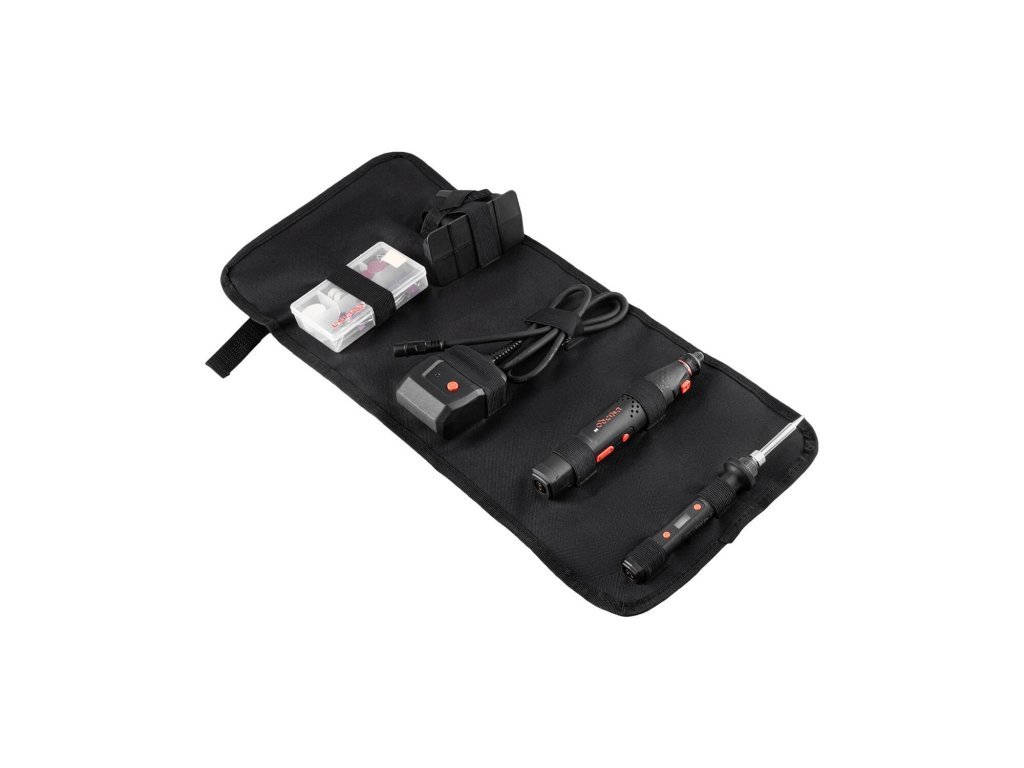 Sada obsahuje vše, co potřebujete k zahájení práce – od stojanu na páječku až po sadu gravírovacích nástavců. Součástí balení je značkové pouzdro pro skladování a přepravu. Díky tomu je DCT-200 obzvláště praktický: nástroj je vždy připraven k práci a snadno se s ním vezme do dílny nebo na práci v terénu.