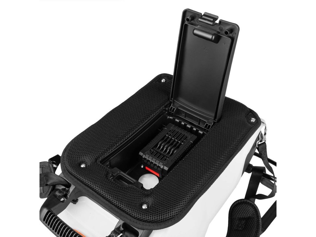 Jeho přítomnost umožňuje přesně nastavit průtok pracovního roztoku (od 0,5 l/min v minimálním režimu do 1,1 l/min v maximálním), šetřit kapalinu a zvyšovat autonomii provozu.