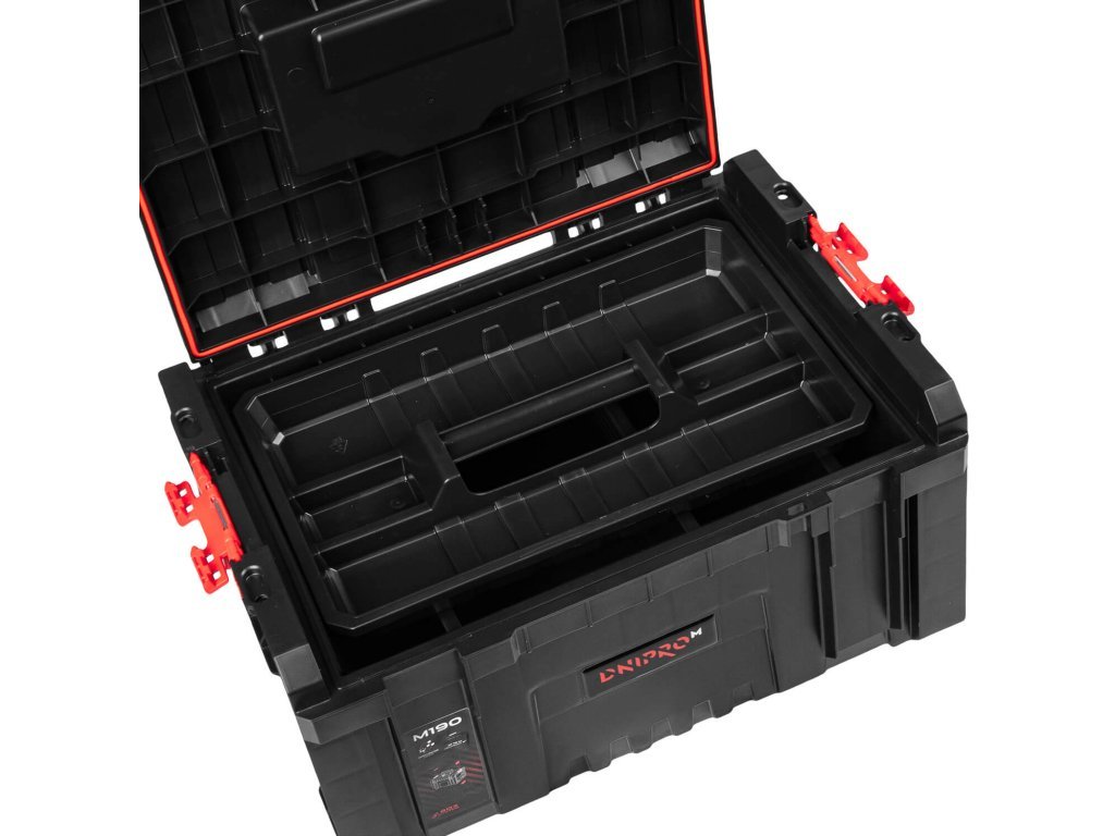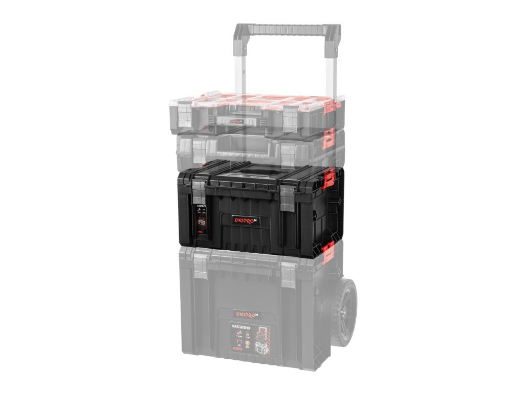 Univerzální box S-Box M190 o objemu 19 litrů se snadno kombinuje s dalšími boxy řady „M“ a je vhodný pro uložení a přepravu nářadí a příslušenství.