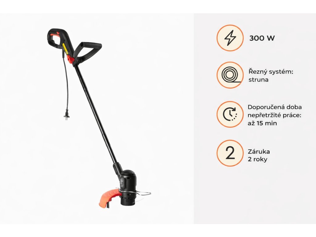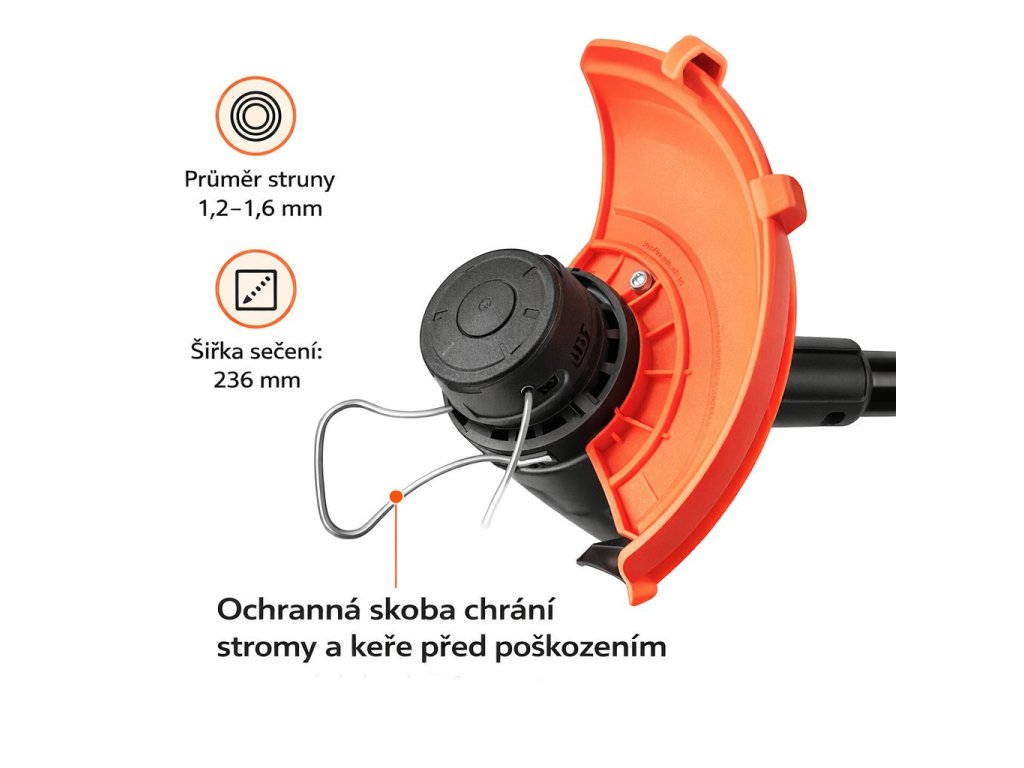 Elektrický zastřihovač umožňuje používat pouze rychloupínací jednostrannou cívku se záběrem sečení 236 mm a pracovat se strunou o průměru 1,6 mm.
