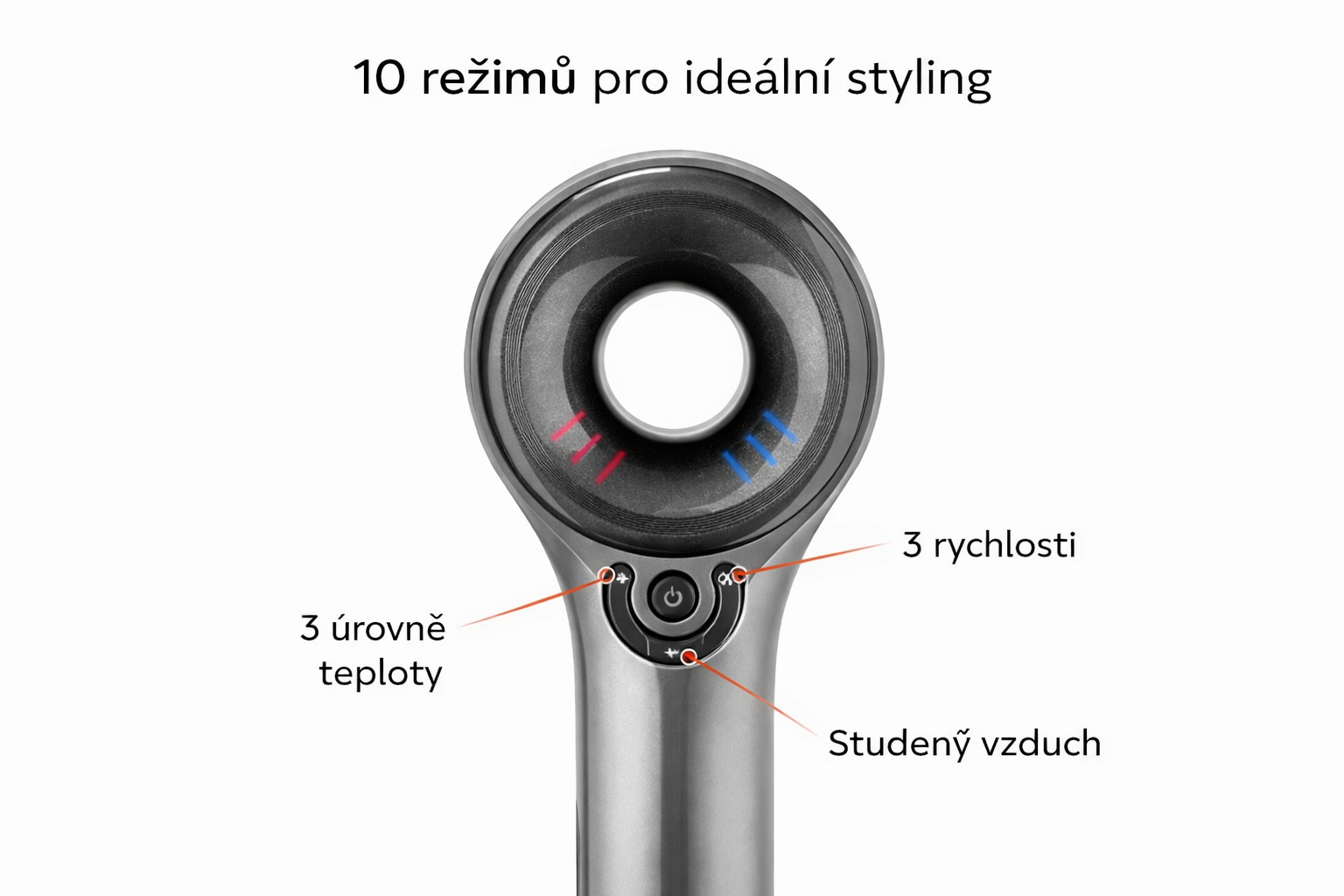 Taková sada nastavení umožňuje přizpůsobit provoz fénu typu vlasů, jejich stavu i požadovanému výsledku – od šetrného sušení až po rychlý styling.