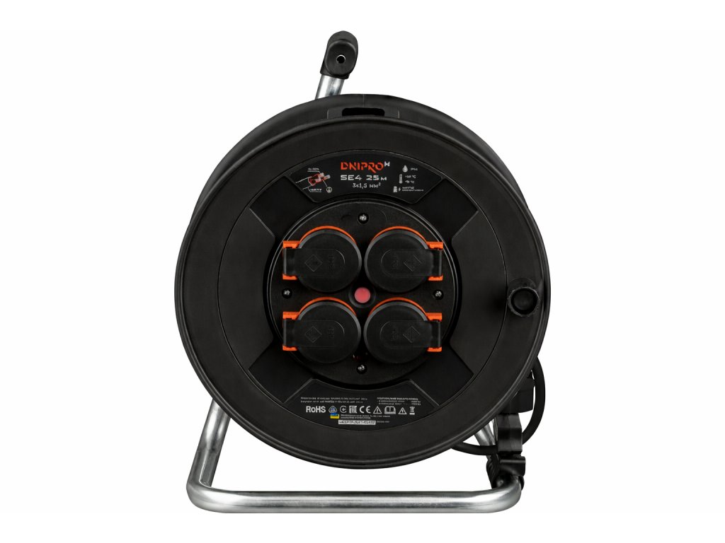 Prodlužovací kabel na bubnu Dnipro-M SE4, 25 m, 3×2,5 mm2, černý