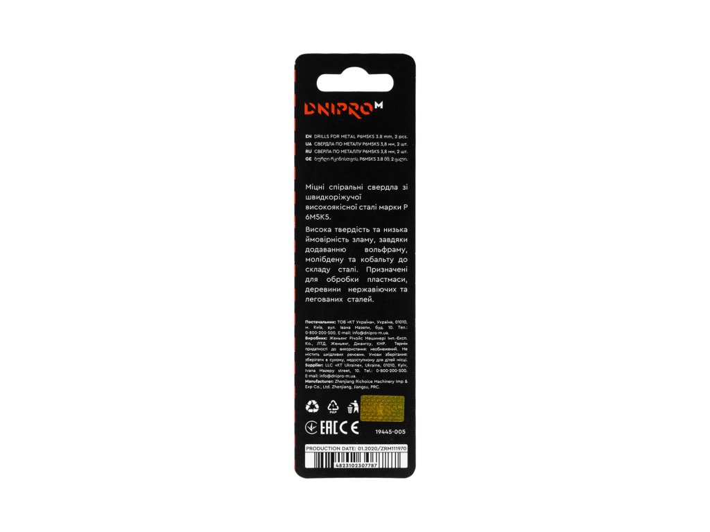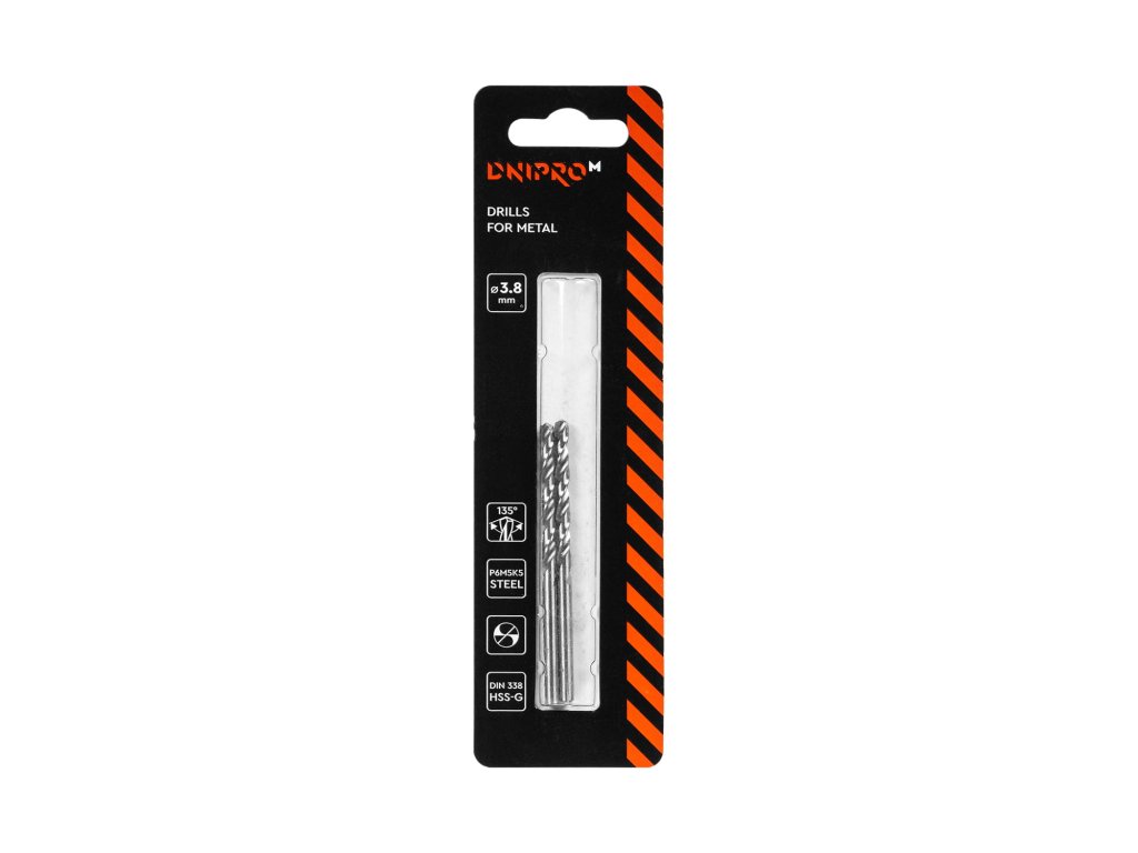 Vrták do kovu P6M5K5 3,8 mm 2 ks. Dnipro-M